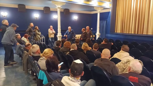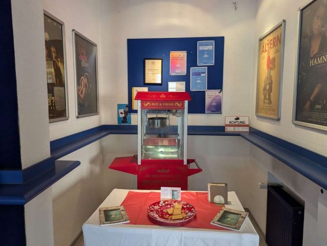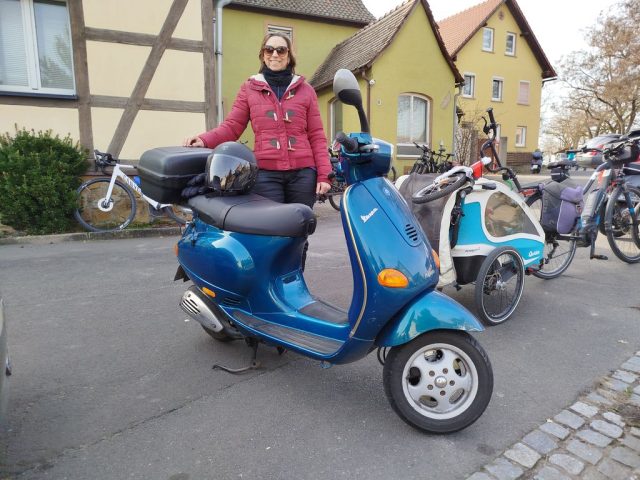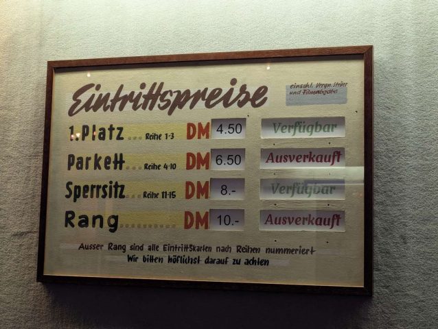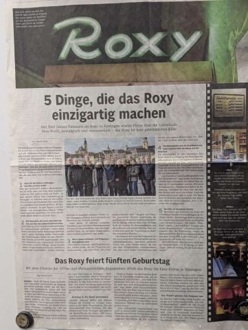 Das Roxy in Kitzingen stellte uns einen Saal für die Filmvorführung 7000 km mit der Vespa zum Nordkap (1999) zur Verfügung. Mit dabei war Theo Däschlein, der Konstrukteur des Vespa-Seitenwagens von der gleichnamigen Firma.